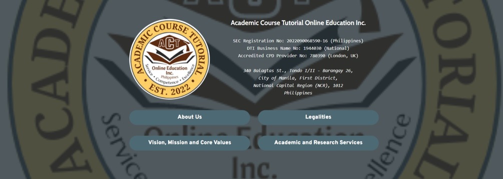 Benefits: Associate Members can be invited as resource speakers and join the editorial and publication team of the Academic Course Tutorial Online Education Inc. (subject to evaluation).